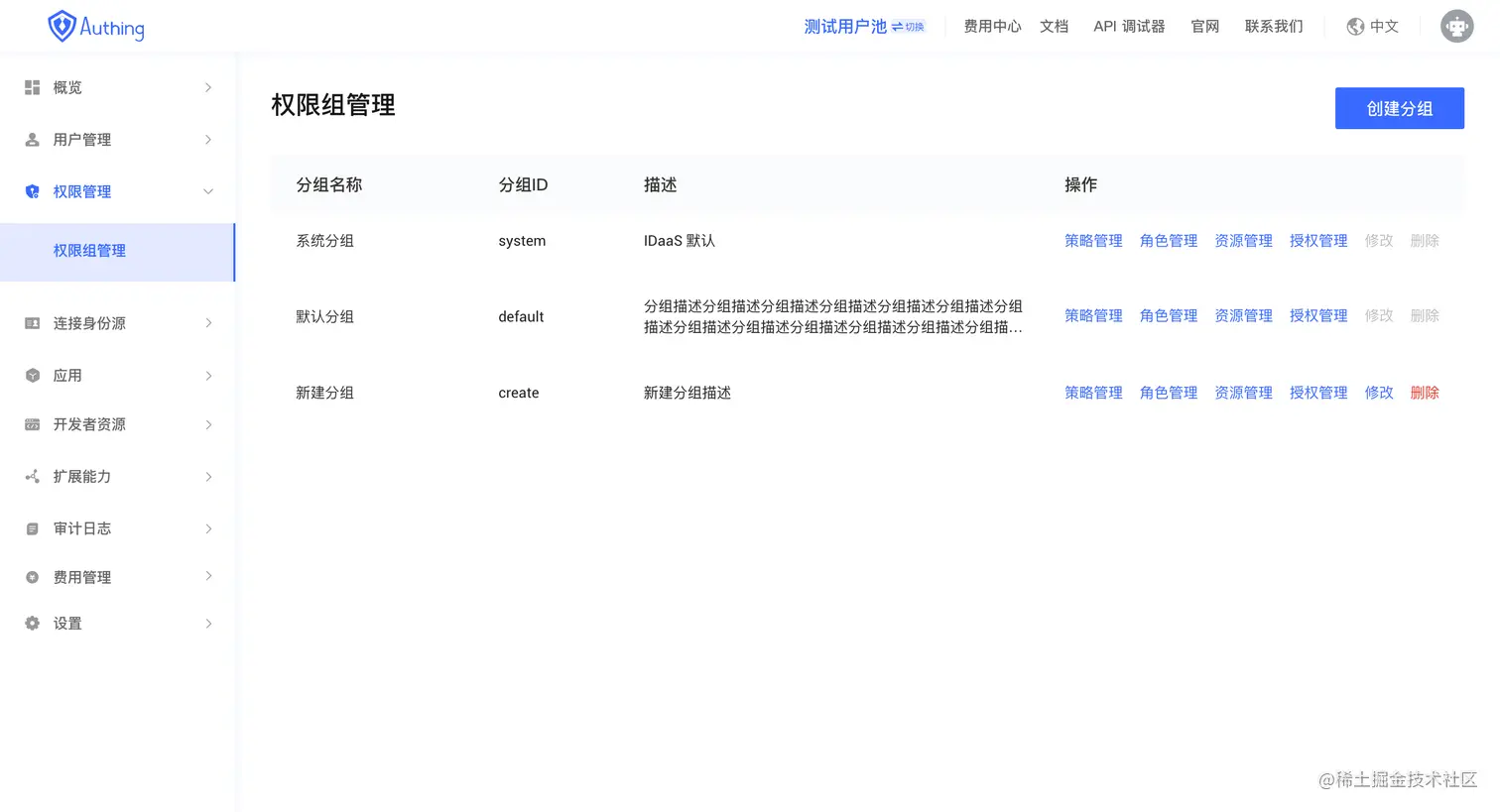 上线权限分组功能,将角色、资源、策略、授权功能统一分组管理。