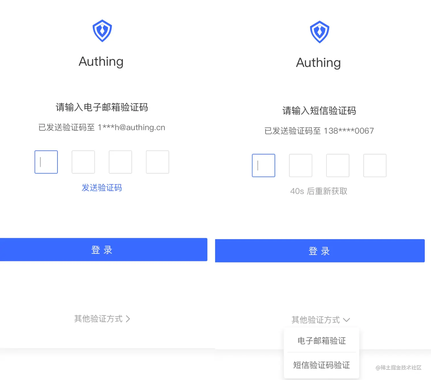 上线邮箱和手机两种模式的 OTP 多因素认证。