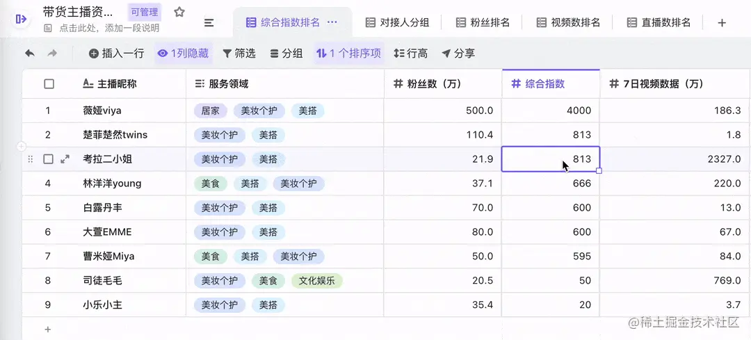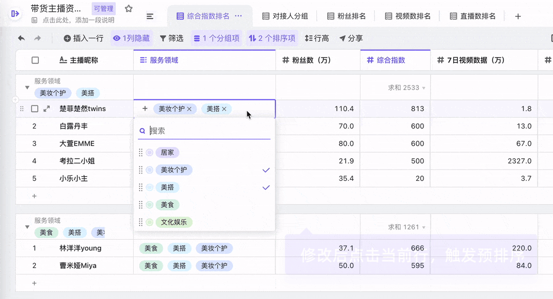 需要注意的是,触发预排序需要保持聚焦在当前维格行——即修改单元格后,仍然点击当前行的内容,像这样: