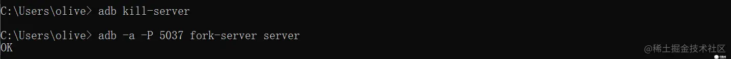adb -a -P 5037 fork-server server