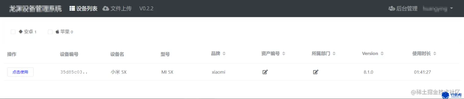 浏览器输入 宿主机IP地址:4000 访问ATX server2设备管理系统,设备列表展示如下: