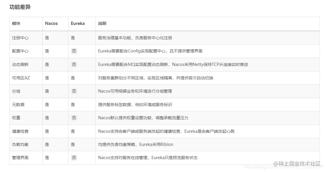 在SpringCloud的原生框架中,eureka和就是一个很好的注册中心,而且eureka可以直接通过代码构件,但是为什么alibaba为什么还要写一套注册中心呢?我们通过下面的功能差异来看一下