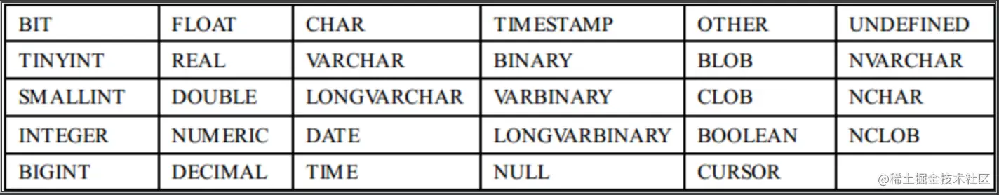 - `decimal/bigdecimal` 是 `java.util.BigDecimal` 的别名。