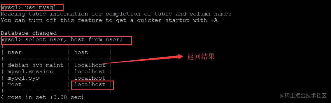 说明有多个root用户纪录在user表中了,我们重新执行下面命令就可以看到字段 host 的 % 值: