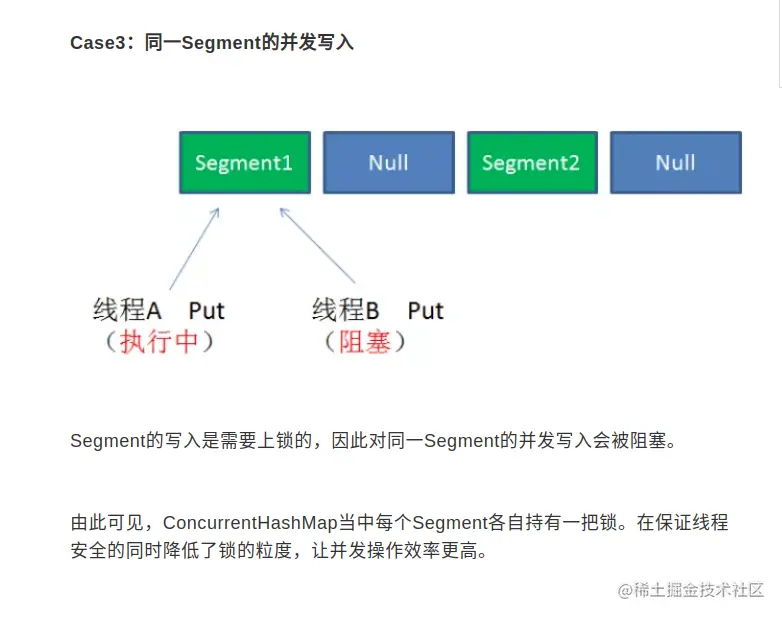 ConcurrentHashMap是一个二级哈希表。在一个总的哈希表下面,有若干个子哈希表。