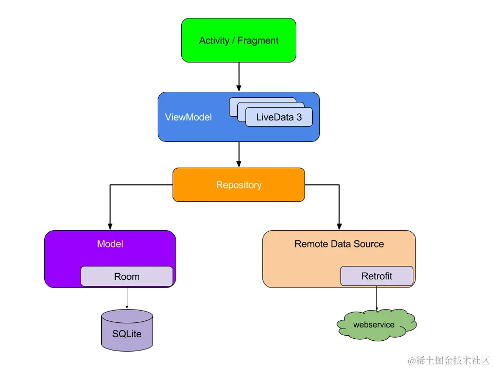 ViewModel: 以生命周期的方式管理界面相关的数据,通常和DataBinding配合使用,为开发者实现MVVM架构提供了强有力的支持。