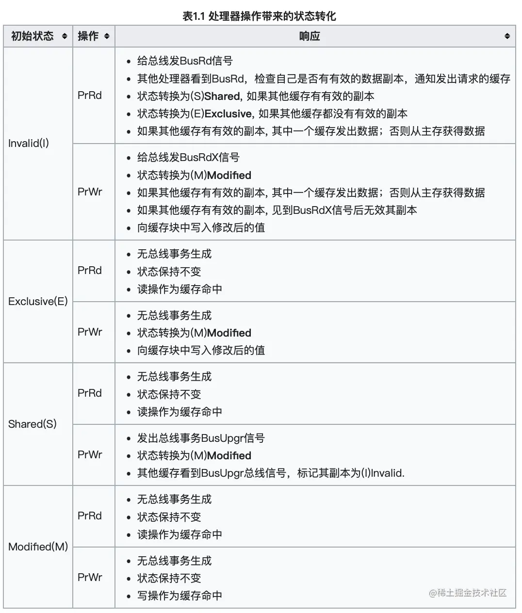 - PrWr: 处理器请求写一个缓存块