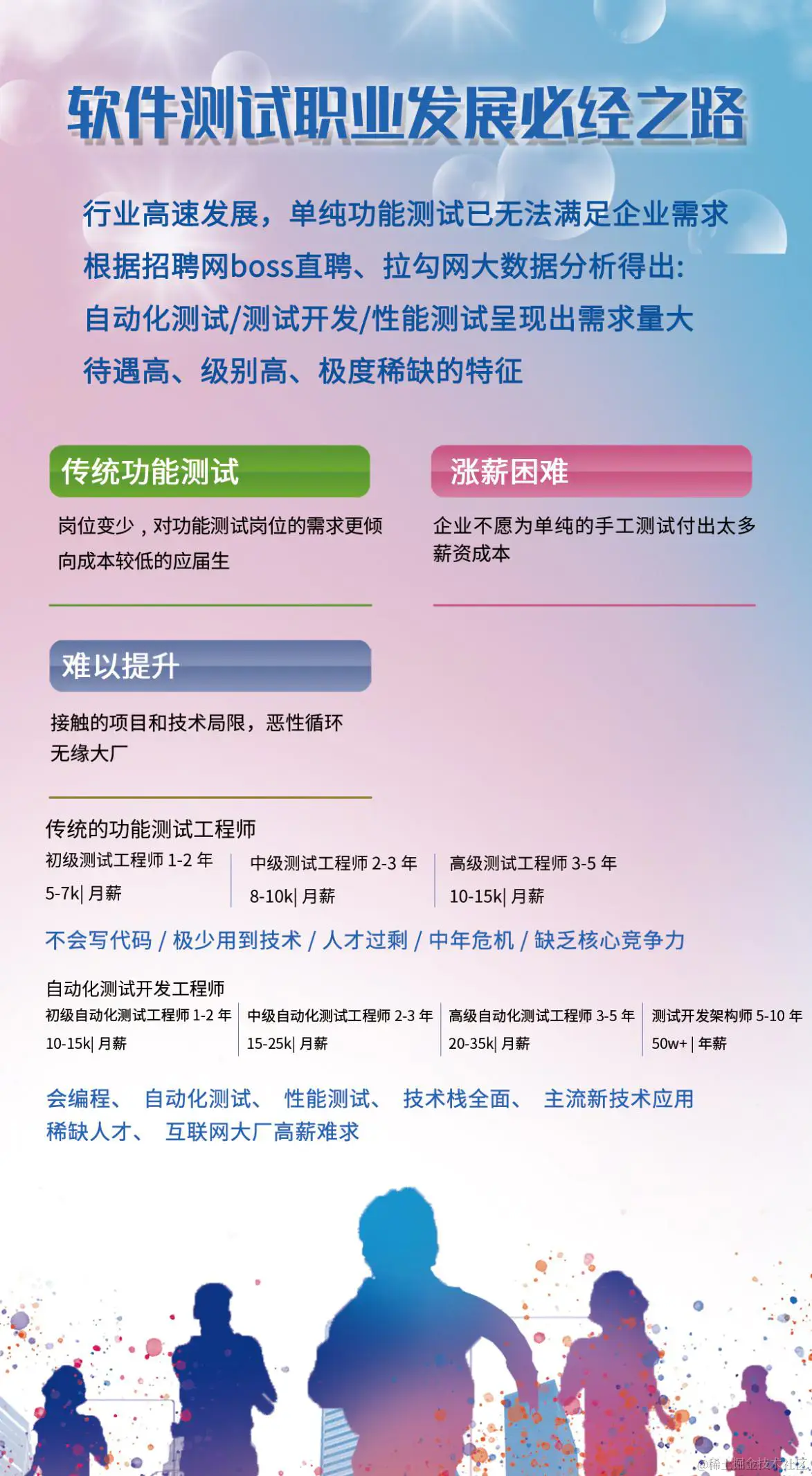 这个是大家都深有体会的,第一个,因为手工测试已经跟不上时代的生产力要求。但并不是说,要淘汰手工测试。(只要有软件测试行业的存在,手工测试就不会被淘汰)这个和自动化测试不会替代手工测试是一个道理。