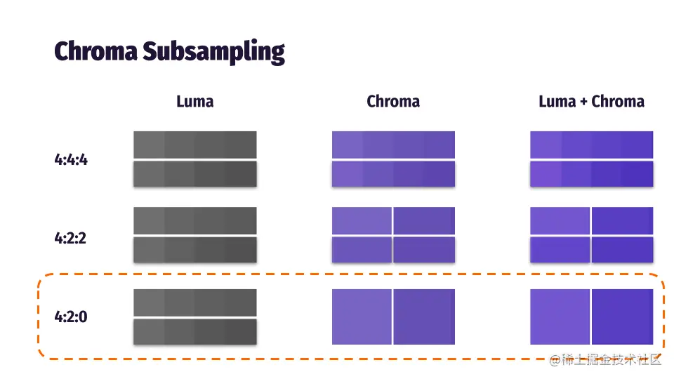 研究表明,人眼能够识别颜色的亮度,但不太擅长看到同一颜色的不同细微差别,所以这就是色度子采样的出现方式。色度子采样实际上是一种用于图像和视频的压缩技术。因此,关于图像亮度的信息比来自图像的颜色更重要。
