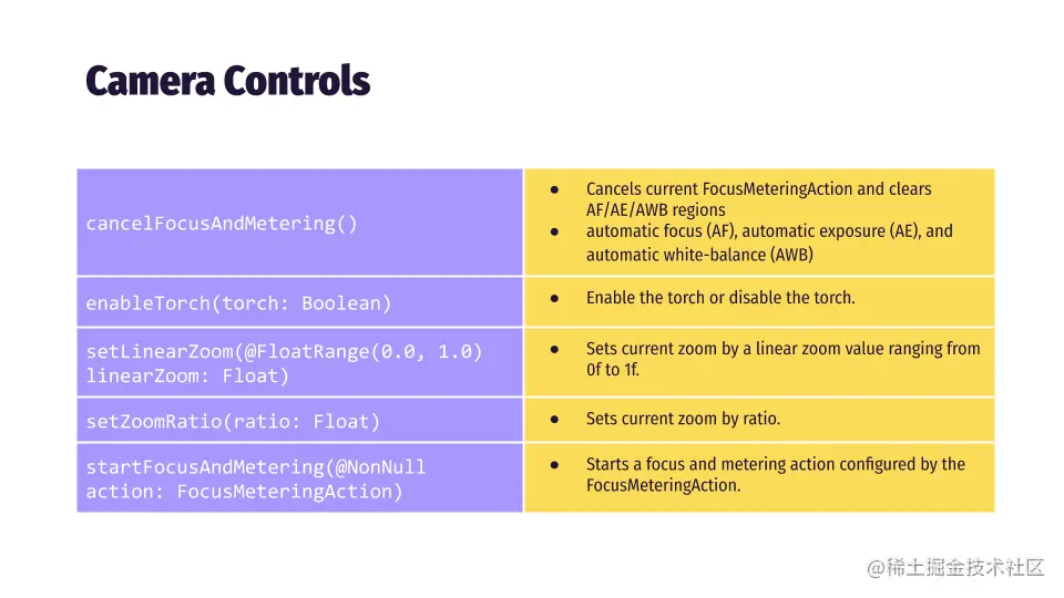 Camera Control提供各种异步操作,如缩放、对焦和测光,这些操作会影响当前绑定到该相机的所有用例的输出。