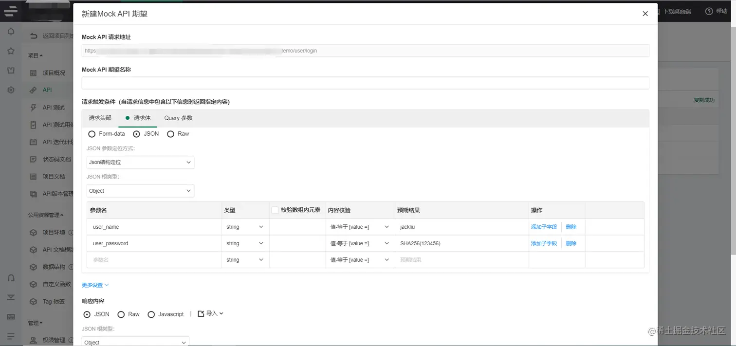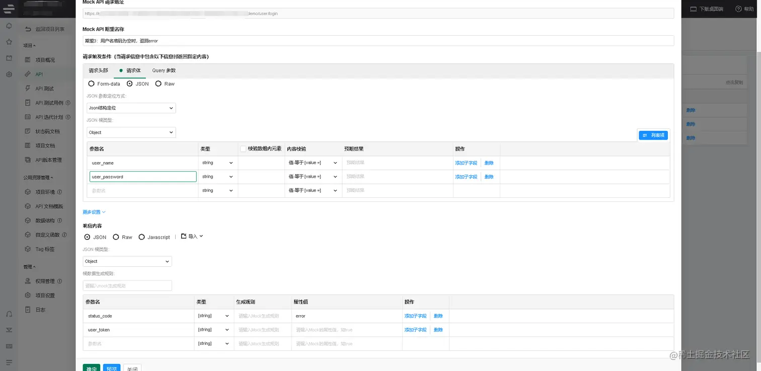 生成API文档后在MockAPI填写期望信息。