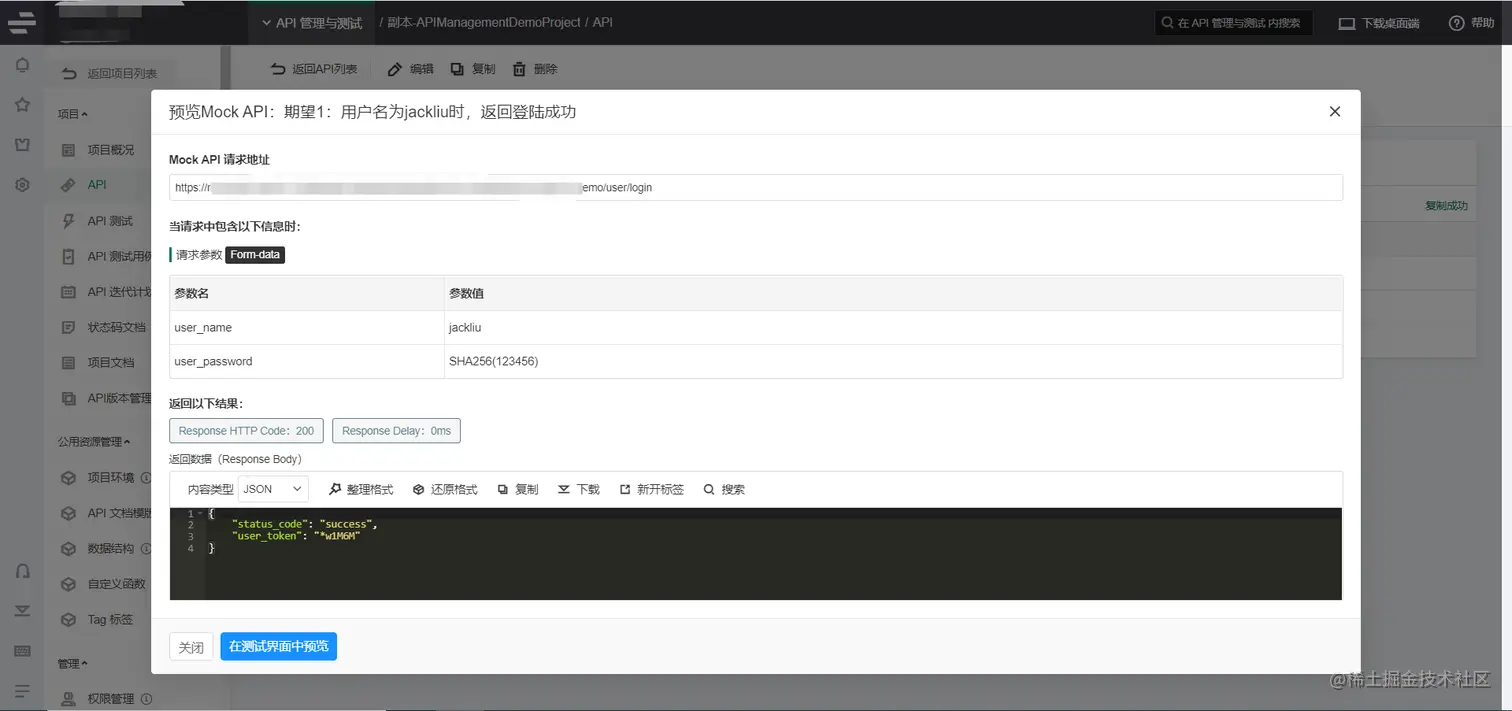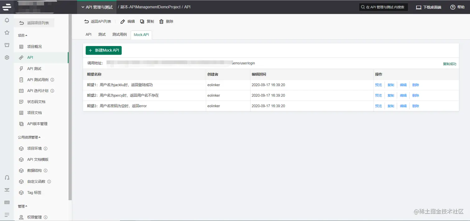 调用MockAPI的url,设置期望参数即可测试并用于开发。