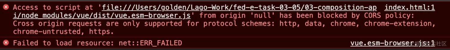 在不借助任何构建工具的情况下,使用script标签设置type为module的方式引入vue.esm-browser.js模块,来学习Composition API使用