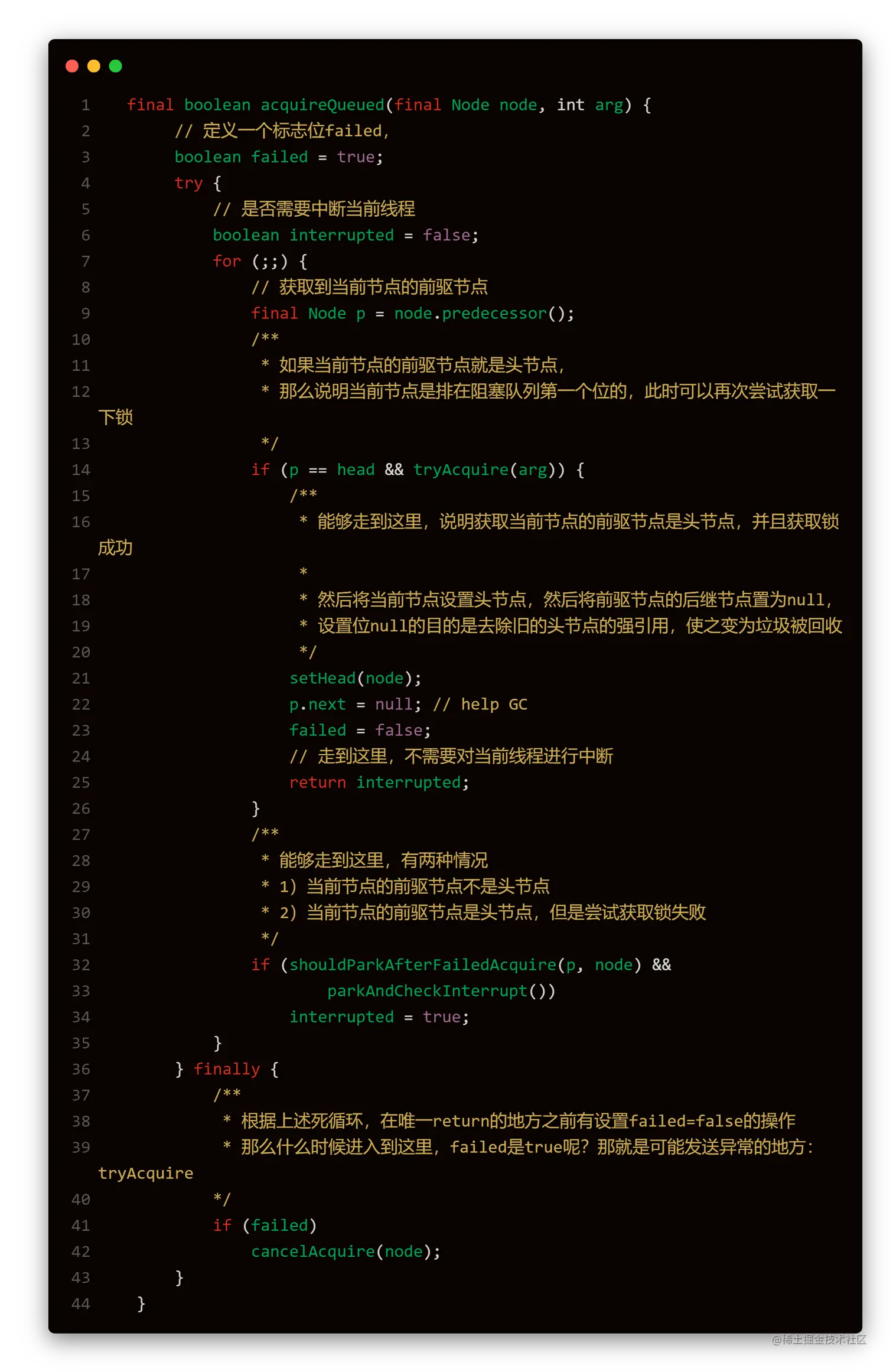 查看acquireQueued具体实现分析: