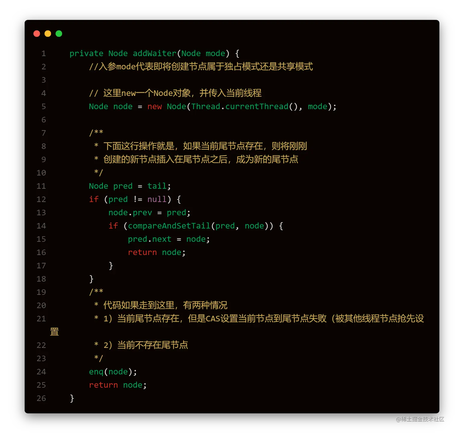 然后查看addWaiter具体实现分析: