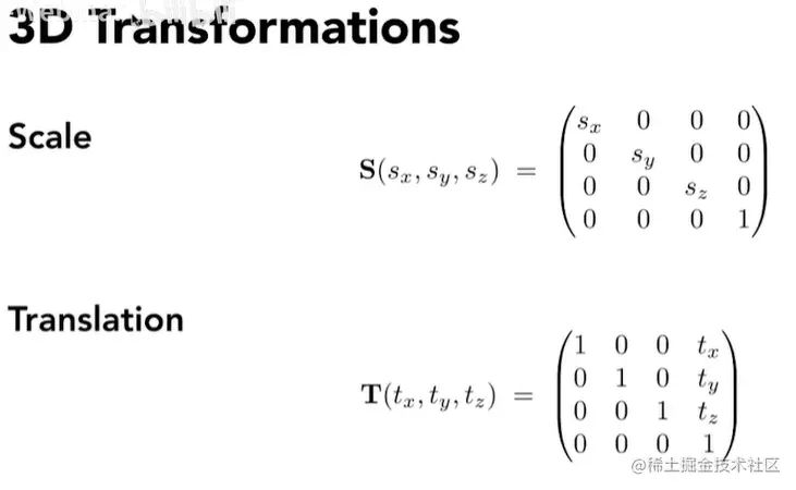 - (x, y, z, 1), (kx, ky, kz, k!=0), (xz, yz, z2, z!=0),在3D中都表示相同的点(x, y, z)
