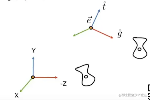 所以,我们规定将相机放在原点,up在Y轴,看向-z方向