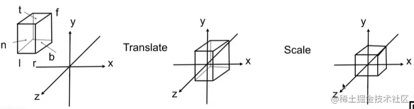 更常规得看,我们是将一个立方体[l,r]×[b,t]×[f,n]映射到一个(正则,规范、标准)的立方体[−1,1]3