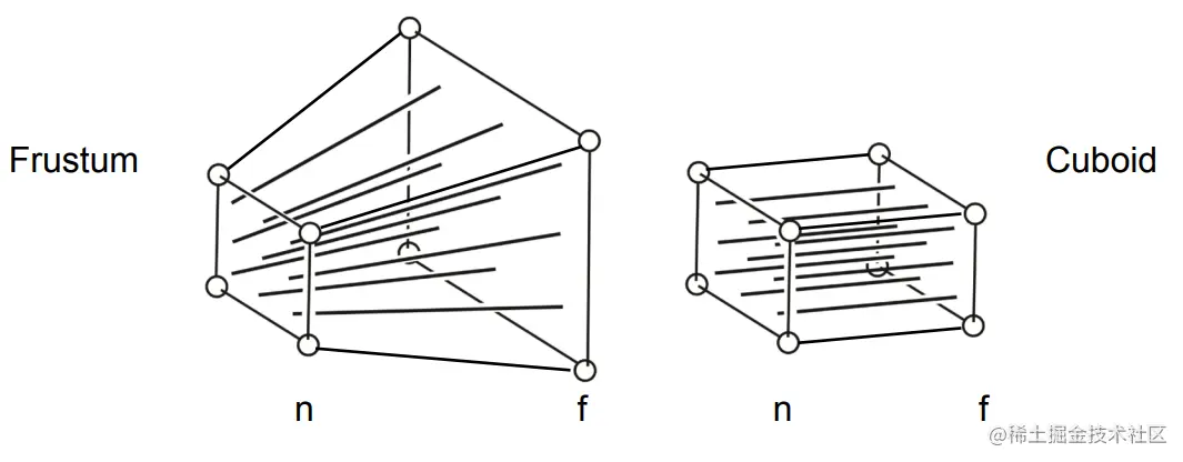 这里可能会有人有疑问,为什么要压缩到一个小立方体呢?其实是为了之后计算方便,在转换到屏幕坐标的时候就会重新拉伸回来,不必太纠结。