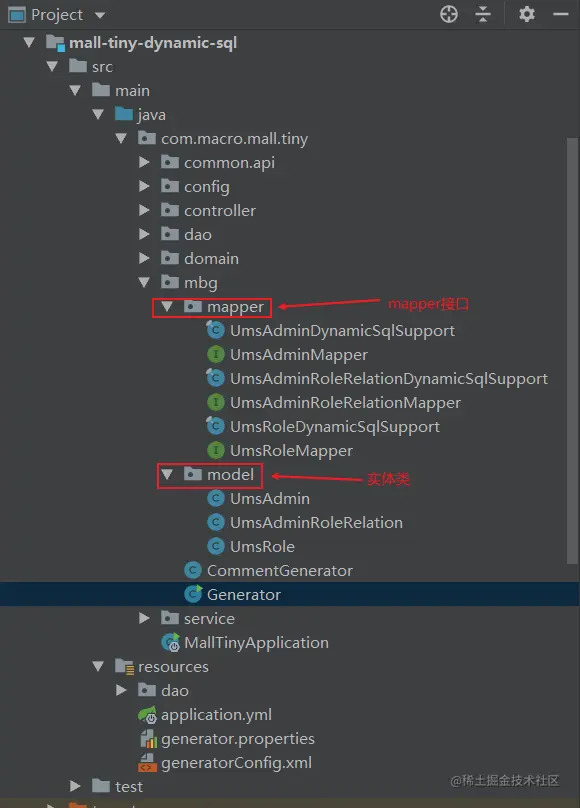 - 添加Java配置,用于扫描Mapper接口路径,MBG生成的放在