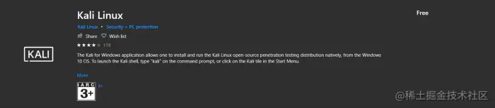 去微软商店下载一份Kali Linux。