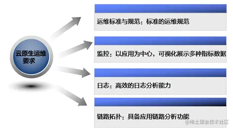 首先,需要有一套高效的运维流程,依托标准的运维规范来完成日常的各种运维动作;其次运维工具也是必不可少的,需要有一套以应用为中心,并且能够具备可视化展示各种维度监控指标的监控平台;日志功能也是运维过程中必不可少的工具,通过日志收集、存储、分析等过程,展示各种日志文件分析后的数据,作为日常运维的重要依据;最后,链路拓扑也是自动化运维的重要功能点,由于应用下属的实例个数众多,需要可视化展示每个微服务实例之间的调用关系,出现问题时,下钻到微服务内部进行方法级别的故障诊断。