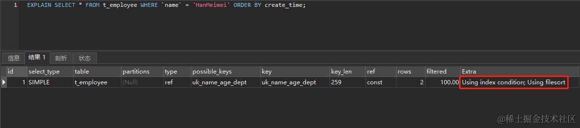 比如现在有一个查询需要排序:SELECT * FROM t_employee WHERE name = 'HanMeimei' ORDER BY create_time;