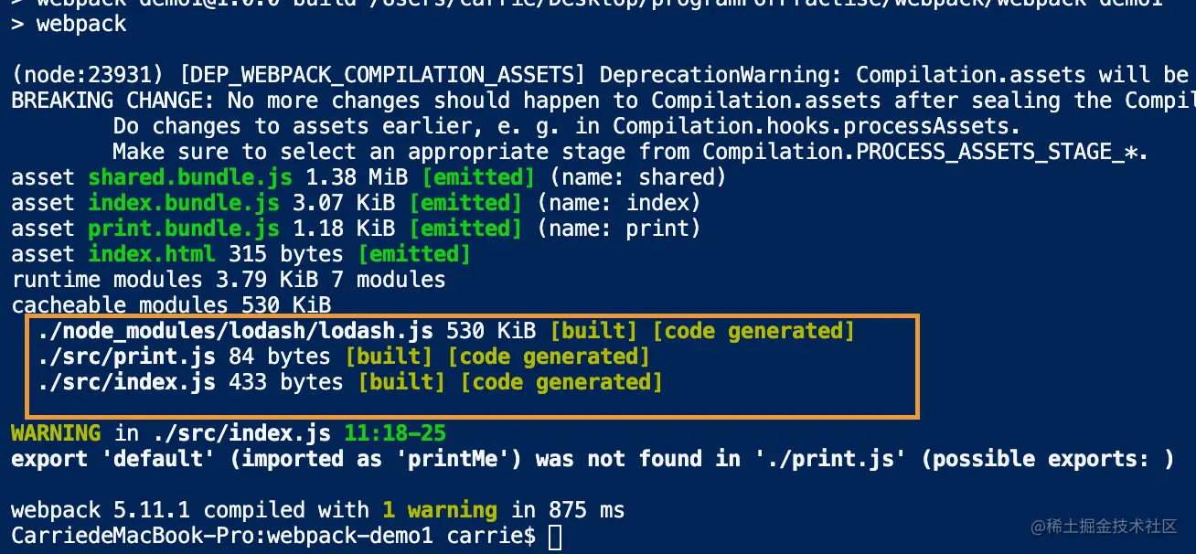 我们已经把lodash从index.bundle,print.bundle等主bundle中移除到一个单独的块中.