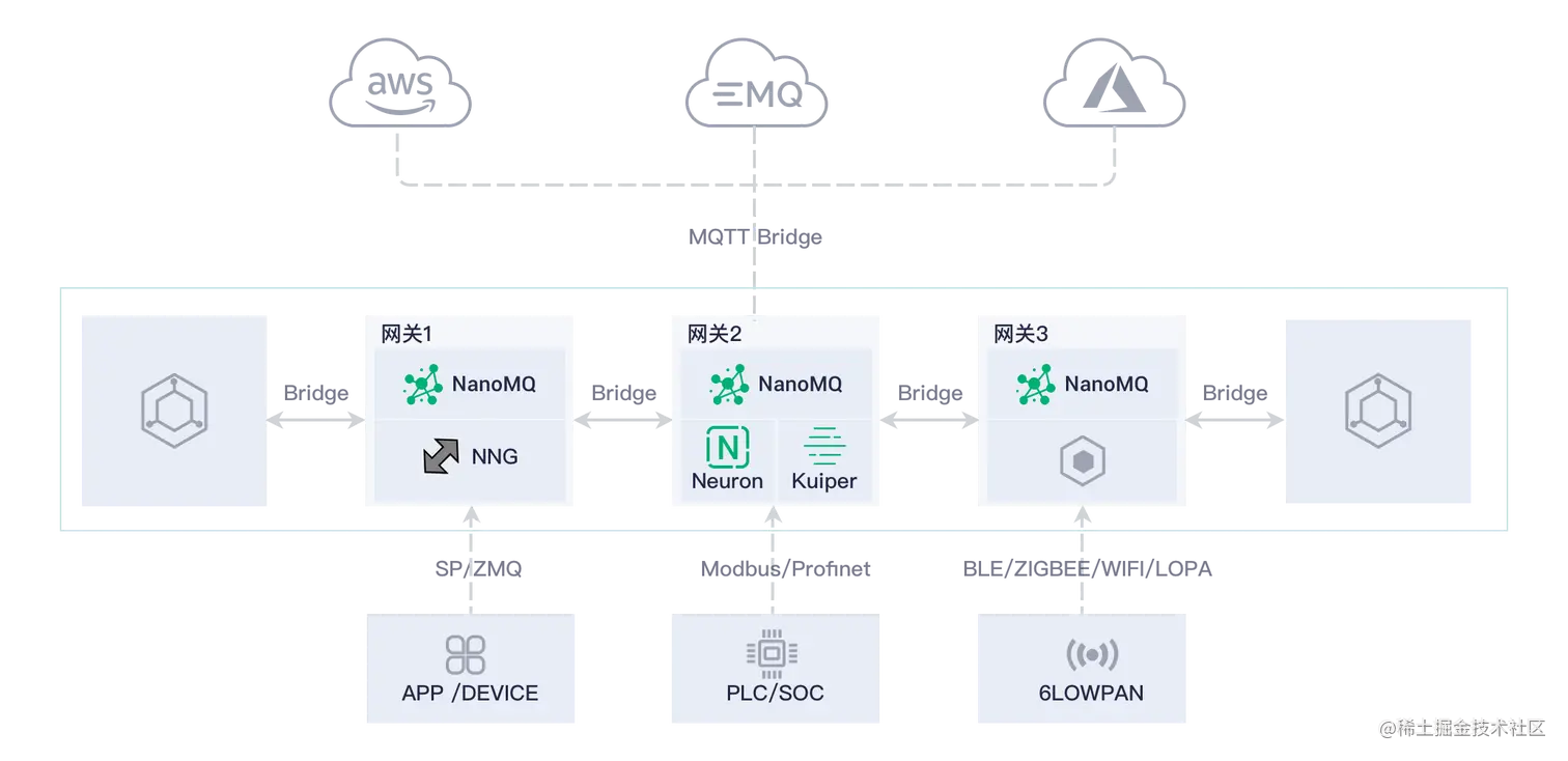 NNG(nng.nanomsg.org/)作为 Nanomsg(nanomsg.org/index.html)… SP 协议和 HTTP/WebSocket 等拓展。在其优秀的多线程模型和网络层 API 基础上,NNG 提供了各种丰富的消息模式支持,在物联网、工业控制、游戏、金融交易等领域都有广泛应用。 EMQ 在项目早期就开始了对其的持续关注,发掘并优化了 NNG 的高效多线程模型。而后,EMQ 与 NNG 达成长期技术合作,将 NNG 作为底层消息总线打造了 NanoMQ。未来,EMQ 将依靠自己在 5G&IoT 领域深厚的开发经验和产品实施落地能力,帮助 NNG 集成更多泛用的物联网协议,拓宽其应用面。在 NanoMQ 项目合作的同时,也将通过开源社区技术反哺 NNG 项目,为其提供 MQTT 协议支持,使其可以作为一个性能优秀的 MQTT SDK 使用。