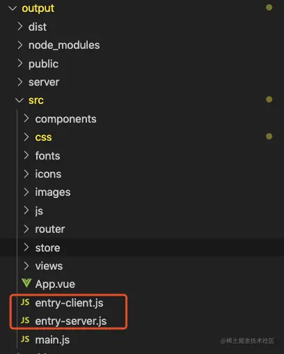 entry-server.js: 服务端入口,用户首屏内容渲染