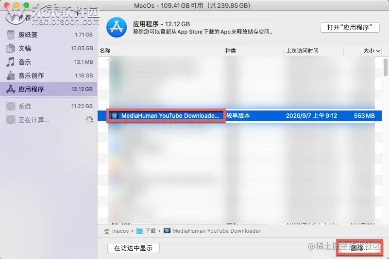 接下来是单击“应用程序”按钮。你将看到所有应用的列表,按其占用的空间排序。选择要卸载的一个或多个应用,然后单击“删除”。