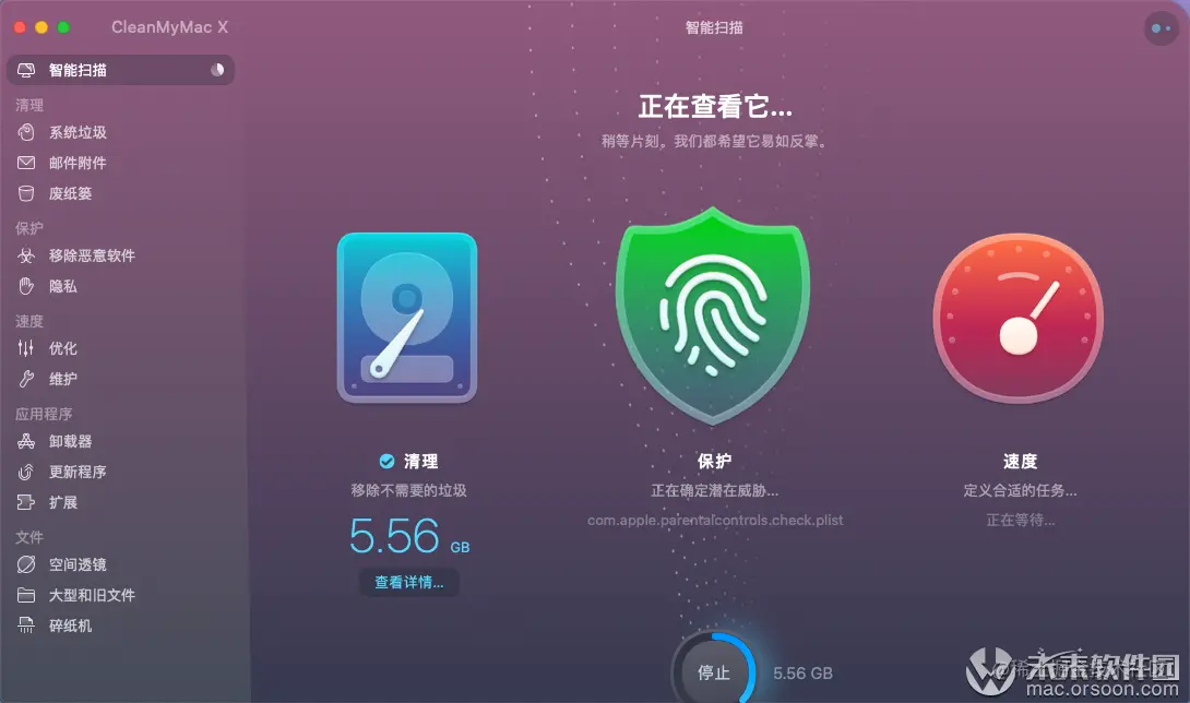 值得庆幸的是,某些应用程序可以帮助简化其中一些步骤并自动执行Mac维护。CleanMyMac X是一款实用的多功能清理工具,可让你的Mac保持最佳状态。它可以帮助你删除缓存文件,临时文件和应用程序。它有一个智能文件浏览器,可以帮助你摆脱旧的和未使用的文件。