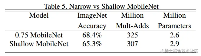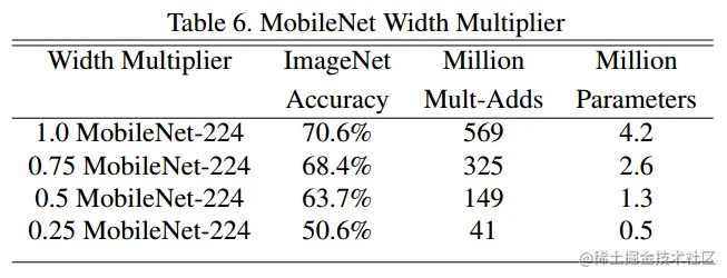 引入两个参数会给肯定会降低 MobileNet 的性能,总结来看是在 accuracy 和 computation,以及 accuracy 和 model size 之间做折中。