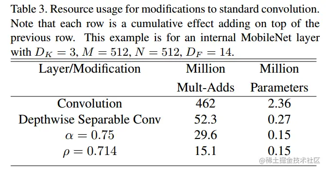 应用宽度乘数可以进一步减少计算量,大约有 α*α 的优化空间。