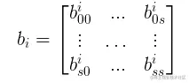 其中,"⋅" 表示一种特殊的矩阵乘法,其运算法则参考下面公式,b 是一个 m 维矩阵”向量”(Matrix Spaces),它的每个元素 (element) 是一个 s×s 大小的 2 维卷积核: