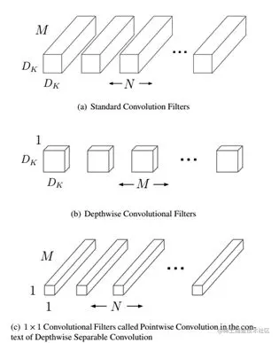 MobileNet 的主要工作是用 depthwise sparable convolutions(深度级可分离卷积)替代过去的 standard convolutions(标准卷积)来解决卷积网络的计算效率和参数量的问题。MobileNets 模型基于是 depthwise sparable convolutions(深度级可分离卷积),它可以将标准卷积分解成一个深度卷积和一个点卷积(1 × 1 卷积核)。深度卷积将每个卷积核应用到每一个通道,而 1 × 1 卷积用来组合通道卷积的输出。