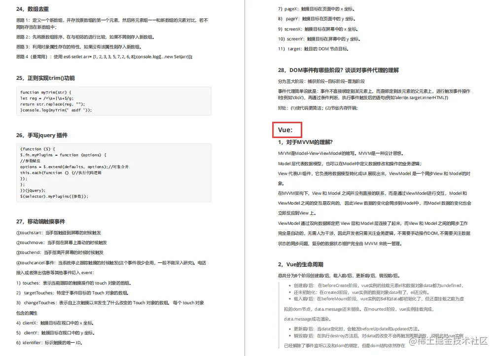 在自学过程中有过一些小厂的面试经历,也在一些小型的互联网公司实习过,这些都不是本文重点。本篇章主要分享一下这次字节跳动、美团、头条等大厂的面试真题涉及到的知识点,以及我个人的学习方法、学习路线等,当然也整理了一些学习文档资料出来是附赠给大家的。知识点涉及比较全面,包括但不限于前端基础,HTML,CSS,JavaScript,Vue,ES6,HTTP,浏览器,算法等等
