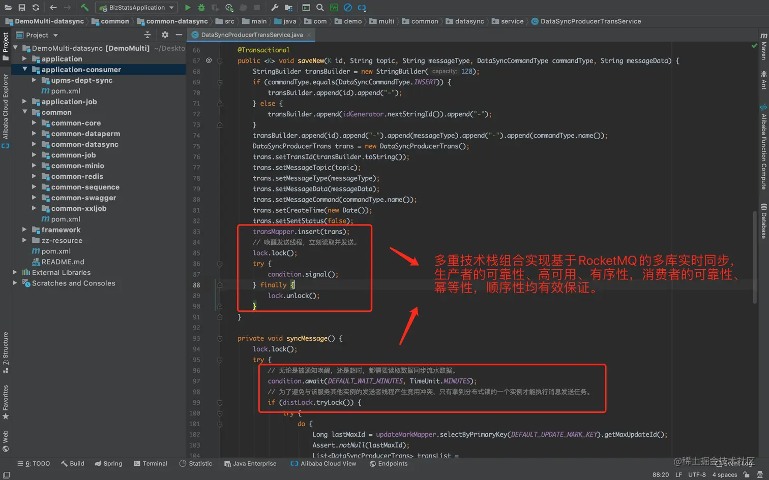 - 根据用户反馈,集成RoctetMQ,在有效保证消息投递的可靠性、消费的顺序性和幂等性的前提下,实现实时同步部门关系的变化数据到其他多个业务数据库中,从而保障数据权限过滤在实现上的简单性,以及运行时的高效性。