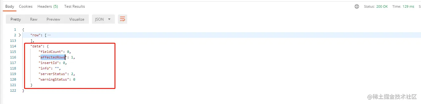 需要注意的是, 当查询的时候你可以使用 [row] 来将结果解构出来, 但是在更新, 修改和删除操作的时候, 并没有返回你删除的某些值, 而是返回一个操作对象, 里面包含了一些必要的信息 ;