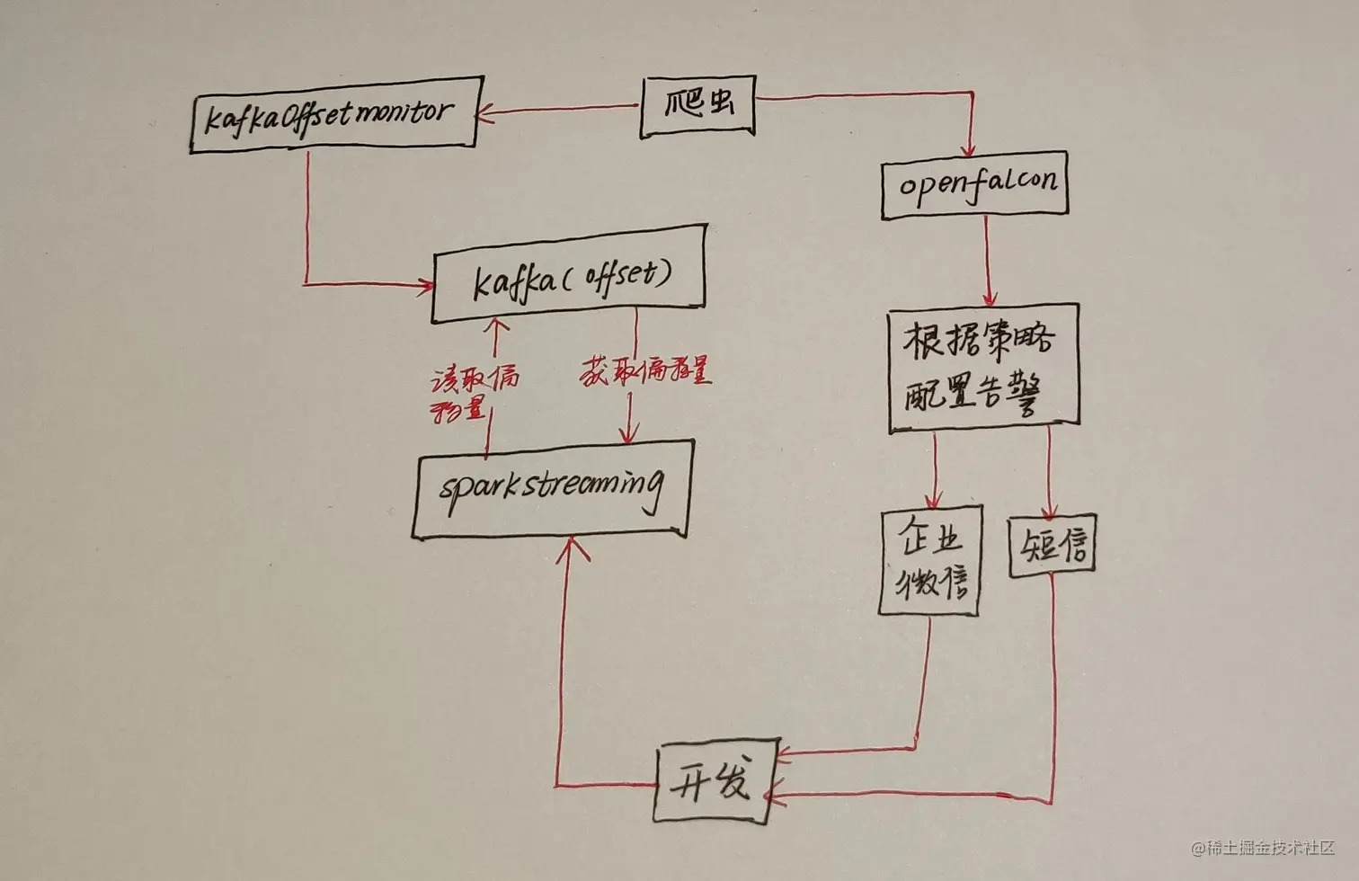 这个只是利用KafkaOffsetmonitor设计的一个方案,利用它对任务进行监控,接着利用爬虫技术获取监控的信息,再把数据导入到openfalcon里面,在openfalcon里根据策略配置告警或者自己研发告警系统,最后把信息利用企业微信或者短信发送给开发人员!