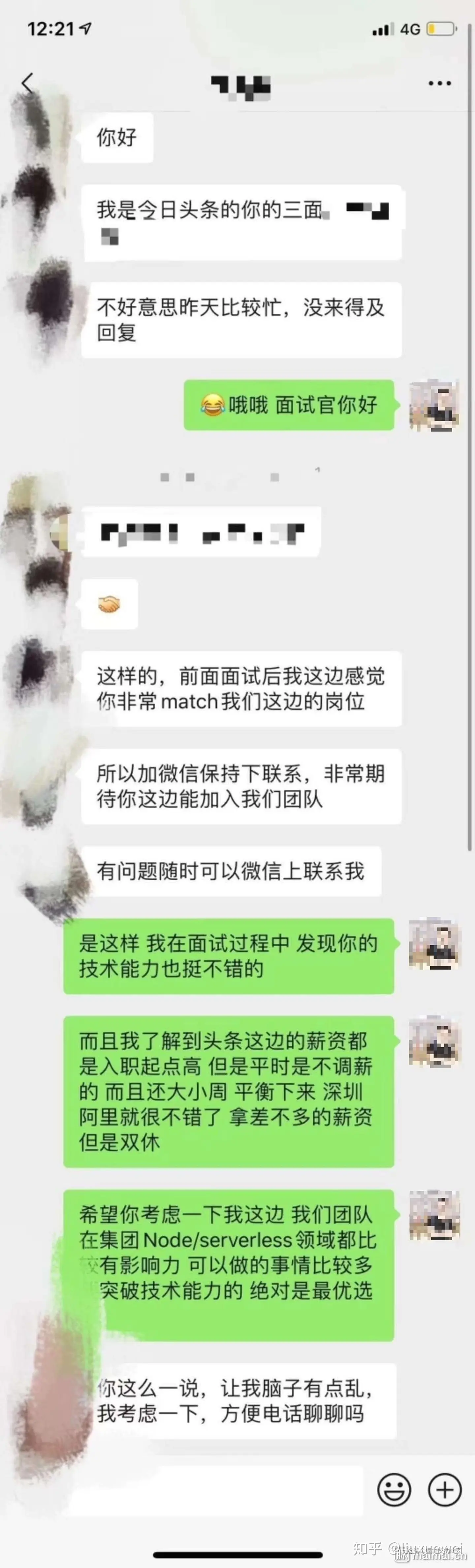 最近网上流传一张本人挖头条面试官的聊天截图,该截图的事情来源如下: