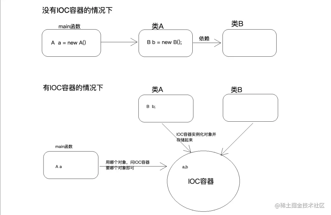 - 传统开发⽅式:⽐如类A依赖于类B,往往会在类A中new⼀个B的对象