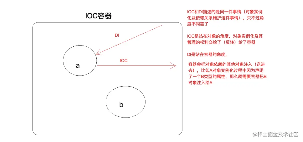 - IOC和DI描述的是同⼀件事情,只不过⻆度不⼀样罢了