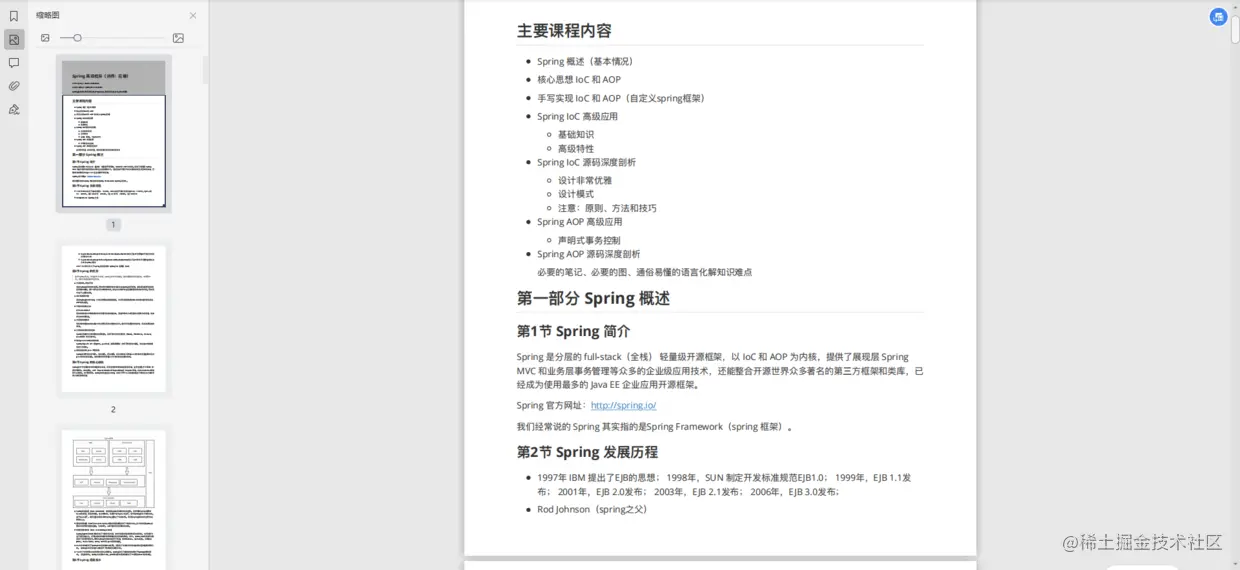 Spring 是分层的 full-stack(全栈) 轻量级开源框架,以 IoC 和 AOP 为内核,提供了展现层 SpringMVC 和业务层事务管理等众多的企业级应⽤技术,还能整合开源世界众多著名的第三⽅框架和类库,已经成为使⽤最多的 Java EE 企业应⽤开源框架。