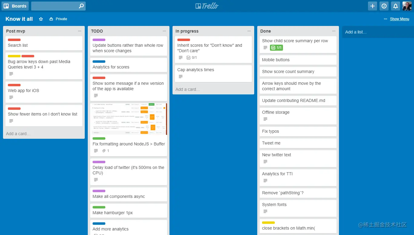 我在大项目中通常使用Jira来管理项目,对于单人项目我一般用Trello。