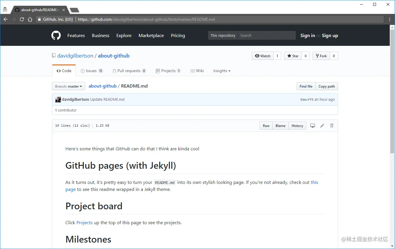 我们通过一个markdown文件就创建一个静态网站,编辑修改非常方便,所以GitHub基本上可以当内容管理系统来用了。