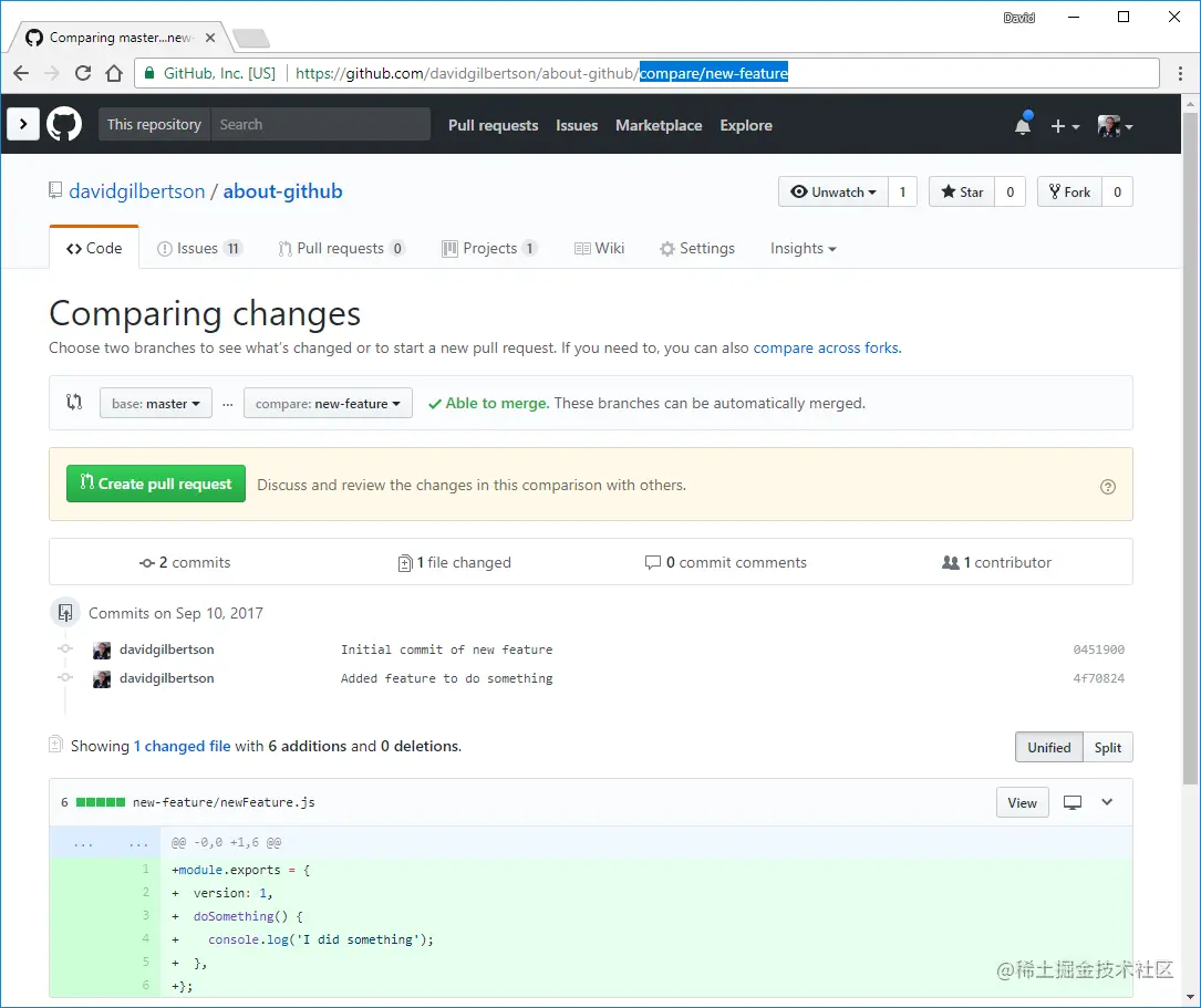 与主干对比,两个分支对比,输入/compare/**integration-branch...**my-branch