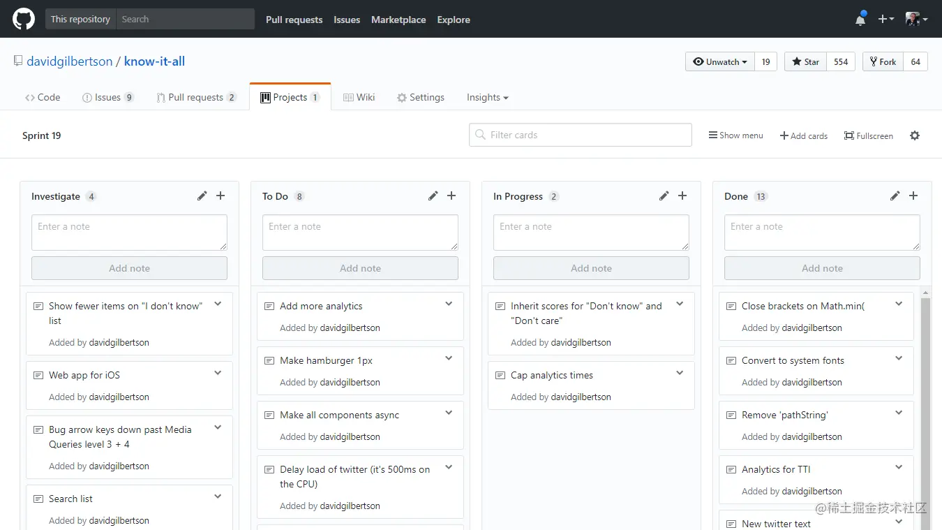 就在几周前我了解到GitHub也提供项目管理。就在你的仓库中找到Projects,我都有点想把我在Trello的工作项移植过来了。
