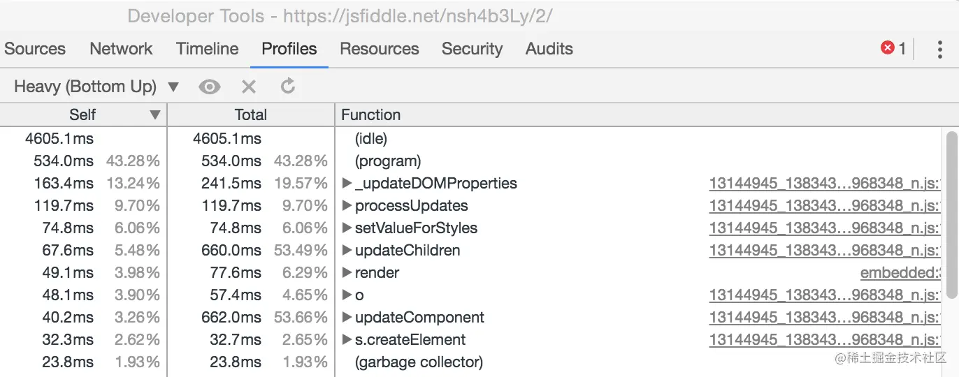 这里有个 方法 你可以测量 shouldComponentUpdate带来的提升, 下面我将集中讨论JavaScript分析器.