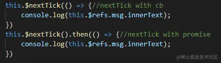 - instance/render.js Vue.prototype.$nextTick = function (fn: Function) {return nextTick(fn, this)}
